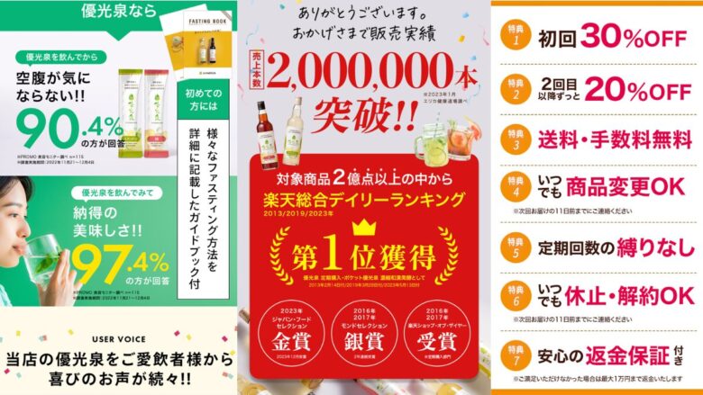 今まで累計200万本以上の販売実績を誇る「優光泉」。